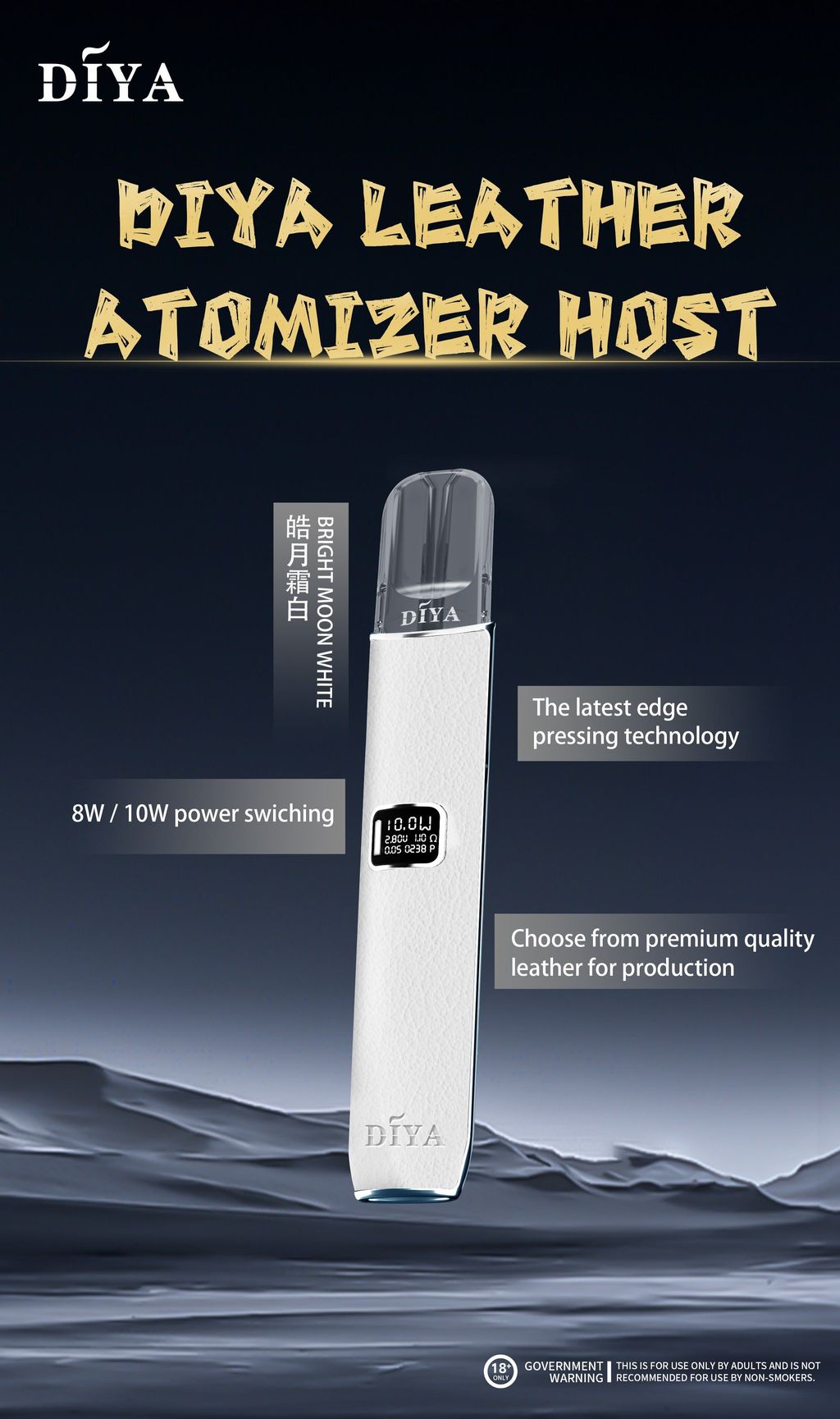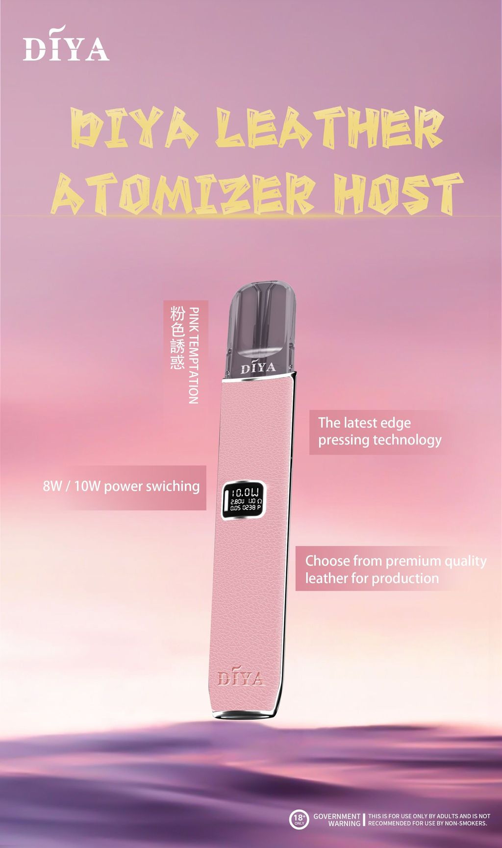 迎接全新DIYA皮革主機電子煙,專為追求風格與性能的現代吸煙者打造!結合義大利進口皮革的奢華質感與靈活可調的8W/10W功率設定,不僅提供卓越的吸入體驗,更讓您在每一次使用中展現獨特個人風格。無論日常外出、通勤或聚會場合,DIYA皮革主機都是您的理想選擇—兼具舒適手感、便捷操作與全面安全保護,重新定義現代電子煙的時尚與實用性。