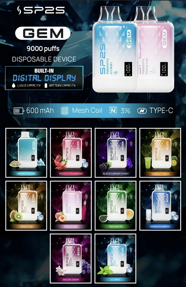 SP2S 9000口拋棄式電子煙提供多種熱門口味,覆蓋經典與創新選擇,滿足不同用戶的味蕾需求: